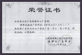 2010年在南通市優秀廣告作品榮獲廣播(商業)類二等獎